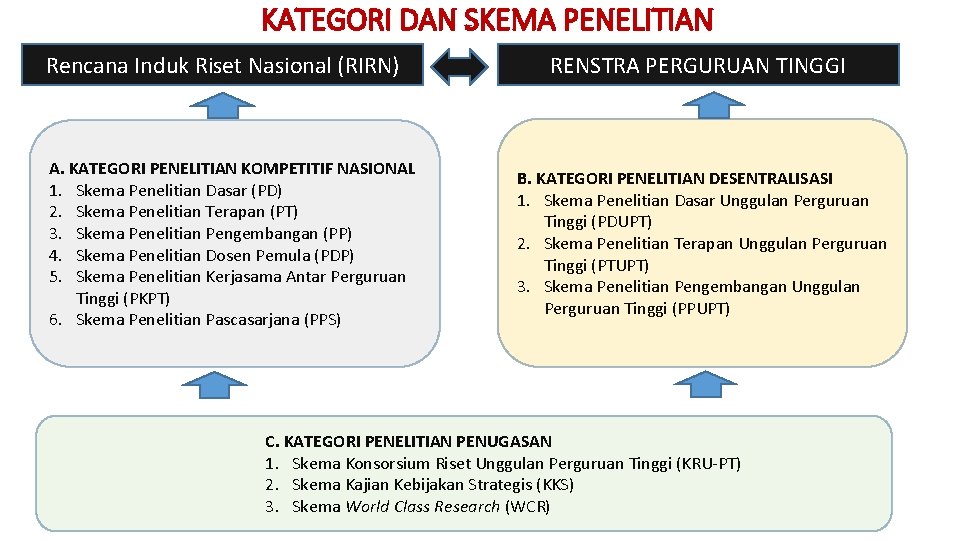 Penelitian terapan adalah model penelitian yang lebih diarahkan . Hasil penelitian pada umumnya berupa penjabaran yang bersifat teoritis dan . Luaran wajib dari skema penelitian ini adalah jurnal nasional . Ilmu pengetahuan yang dihasilkan oleh penelitian dasar dalam kehidupan nyata. Masalah yang ada di masyarakat, industri, pemerintahan sebagai kelanjutan dari riset dasar.